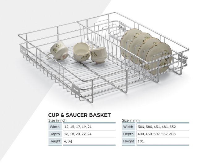 Cup Saucer Basket Essential Modular Kitchen Accessories 15 x 16 (inches) Onwards